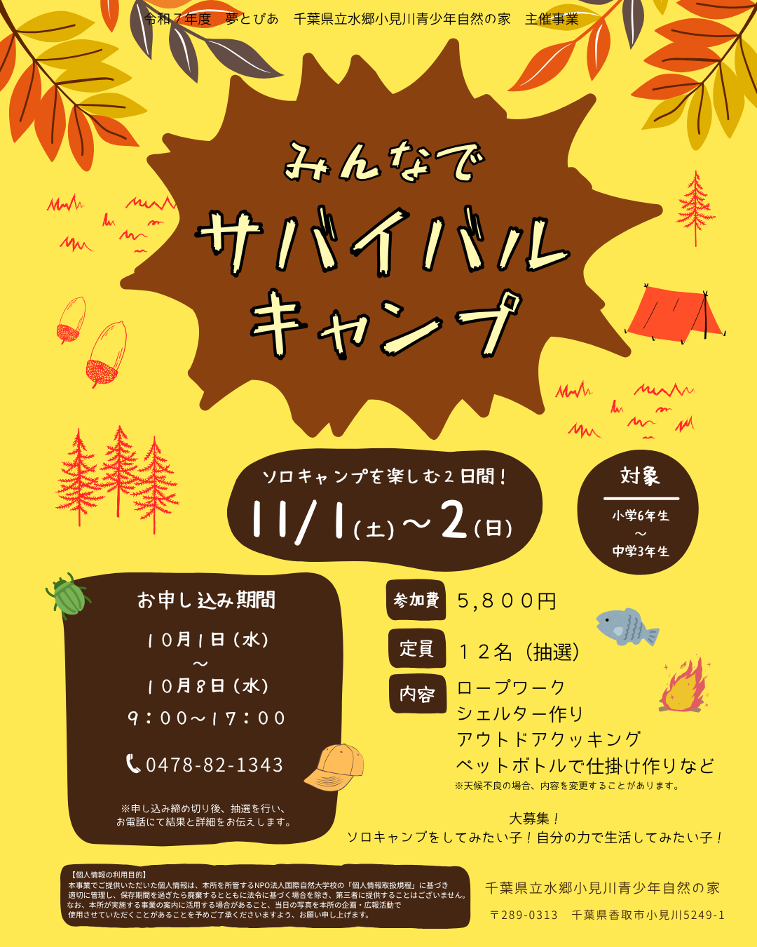 小学6年生~中学生を対象にした 1泊2日のソロキャンプ。 - 2025年11月15日(土)